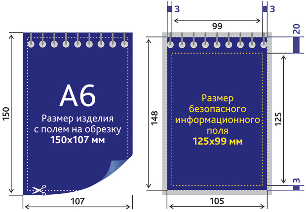 Размер безопасного информационного поля 125x99 мм (где будет текст, логотип);